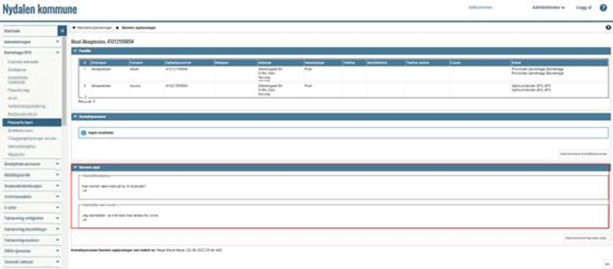 Merk! Ikke alle benytter dette, men enkelte kommuner har lagt inn maler for spørsmål, og dette vises under barnets tilleggsopplysninger.