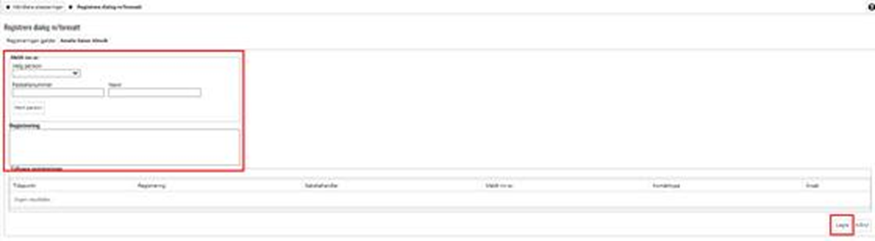 i kolonnen Dialog m/foresatte, og registrer informasjon om dialogen i bildet som åpnes, før du klikker på Lagre: