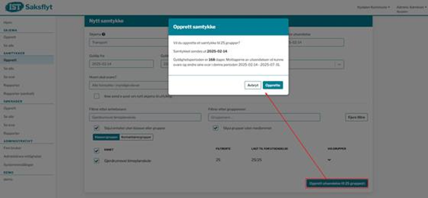 Opprette samtykke og angi dato for utsendelse