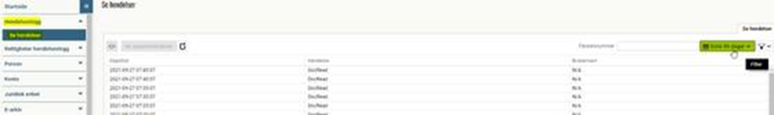Merk at endringsloggen, som standard, viser hendelser som er registrert i løpet av de siste 90 dager, men dette kan endres ved å trykke på kalenderikonet.
