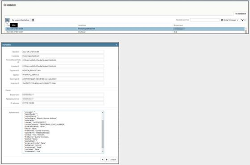 Endringslogg. Person-ID historikk. Hendelseslogg