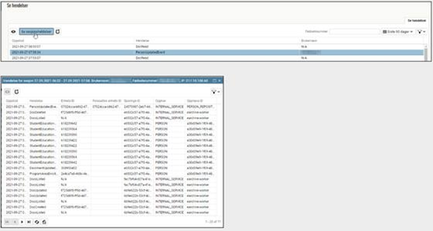 I IST Administrasjon finnes en egen applikasjon (hendelseslogg) som tar imot og lagrer hendelser fra andre tjenester i systemet. Denne hendelsesloggen gir brukere med tildelte rettigheter mulighet til å se og utføre søk knyttet til disse hendelsene. Det kan f.eks. søkes etter hendelser utført av en konkret bruker, hendelser knyttet til endring av personinformasjon, alle hendelser logget innenfor et gitt tidsrom m.m. Rettigheten er hovedsaklig relevant for rollen Sentraladministrator på kommunenivå. Om kunden ønsker å ta dette i bruk, ta kontakt med IST Support for bestilling.