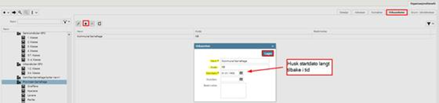 Fyll inn navn og kode. Sett startdato langt tilbake i tid (se eksempel), og trykk på Lagre.