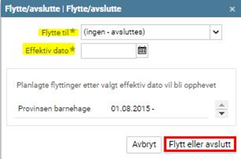 I feltet Flytte til = (Ingen - avsluttes).