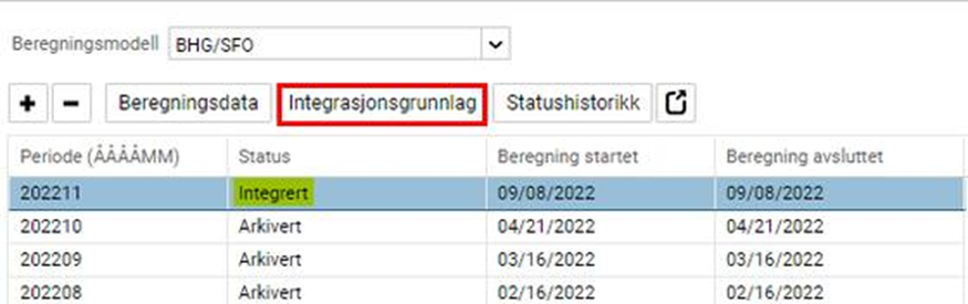 Når faktureringen er beregnet og beregningen kontrollert (se egen guide Fakturering - opprette grunnlag), skal den integreres.
