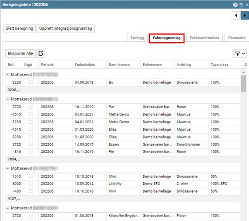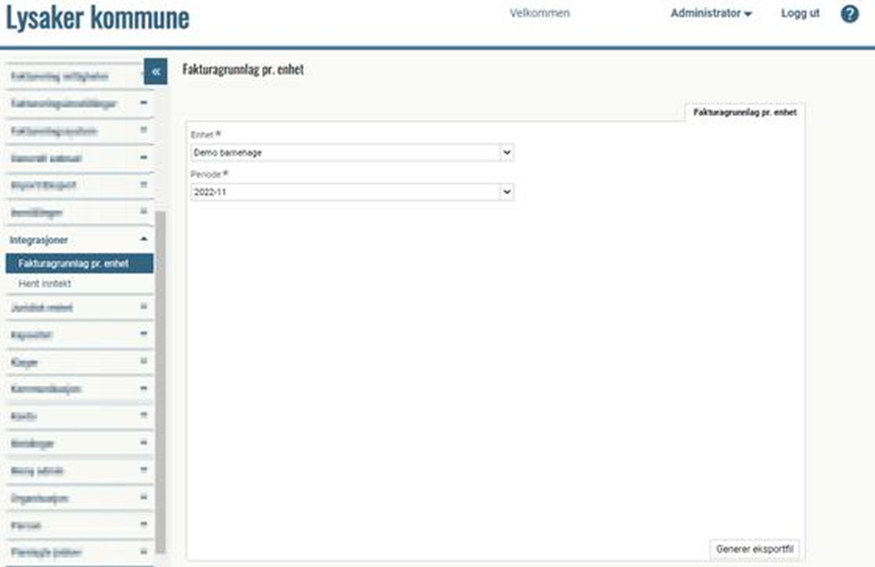 Gå til Integrasjoner > Fakturagrunnlag pr. enhet.