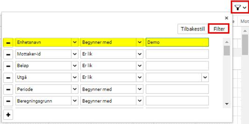 Sett filter på ønsket enhet: