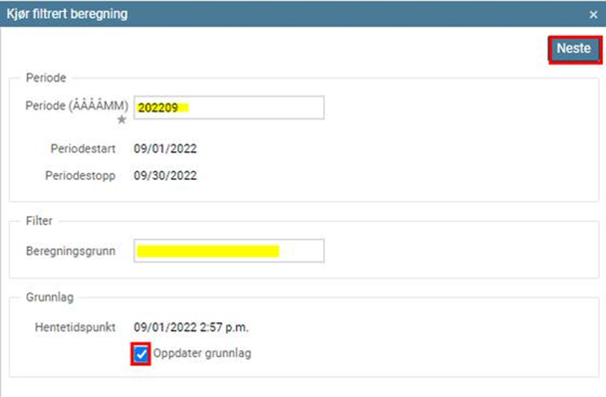 Gå til menypunktet Faktureringssystem > Filtrert beregning: