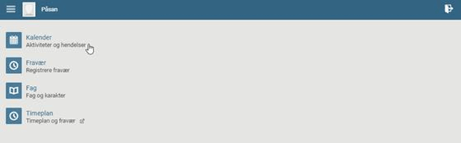 Klikk på ett barn / en elev du har tilgang til, og klikk på menypunktet "Kalender - Aktiviteter og hendelser":