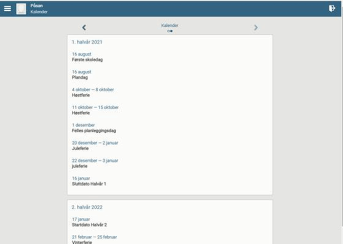 Kalender viser skoleårskalender for enheten/skolen: