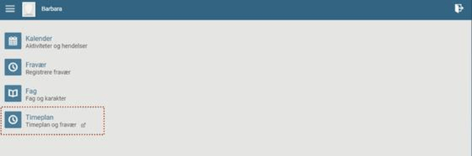I hovedmenyen velger du elev. Deretter klikker du på menypunktet Timeplan:
