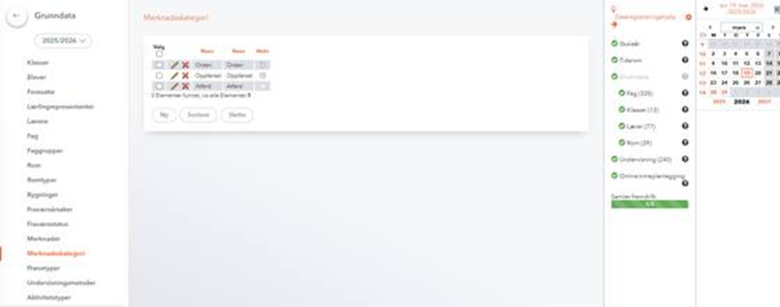 Gå til Timeplan > Grunndata > Merknadskategori Det er to måter å håndtere overgangen fra Atferd til Oppførsel: