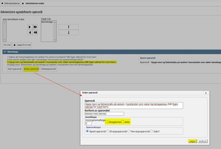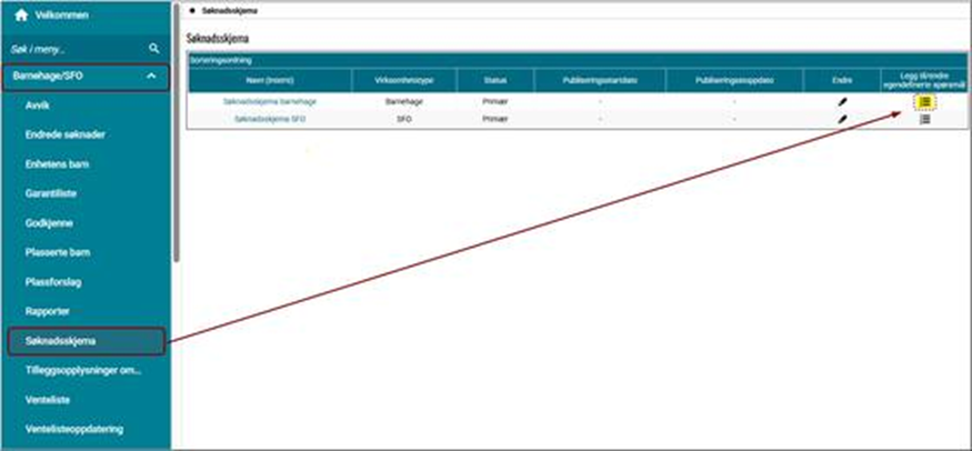 - Trykk på endreblyanten ved Søknadsskjema barnehage