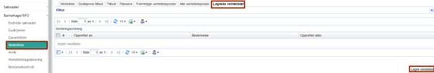 Gå til mappen Barnehage/SFO > Venteliste > fanen Lagrede ventelister. Trykk på knappen Lagre venteliste: