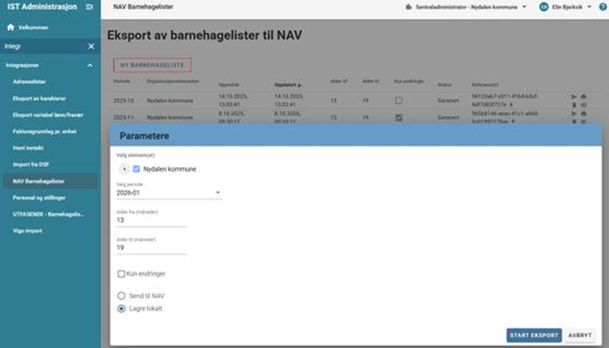 Denne funksjonaliteten benyttes til å levere kontantstøtterapporteringen digitalt direkte via IST sitt fagsystem.