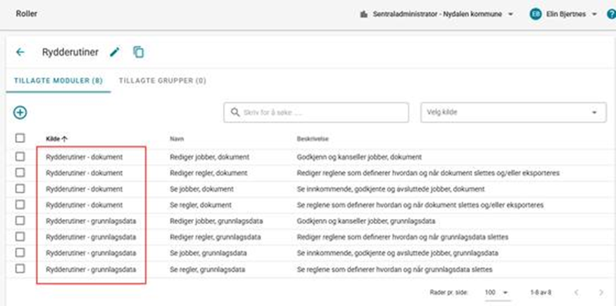 Prosessene og arbeidsflyten er nokså lik mellom dokument og grunnlagsdata, men det finnes noen ulikheter. Rydderutiner er en tjeneste som må bestilles og settes opp av IST før den kan tas i bruk.