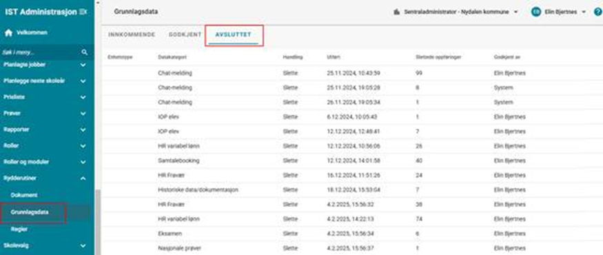 Rydderutiner er en støtte for å administrere oppbevaring av dokumenter og data generert i IST Everyday i henhold til kommunens/organisasjonens rutiner for håndtering av dokument og grunnlagsdata i fagsystemet. Her kan du velge hvilke dokumenter som skal slettes etter en viss tid, og eventuelt hvilke dokumenter som skal eksporteres. Du kan også angi regler for når ulike typer grunnlagsdata skal slettes.