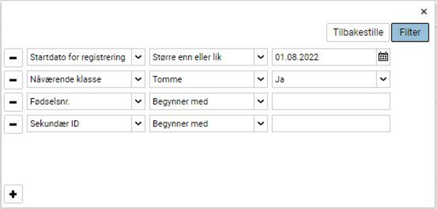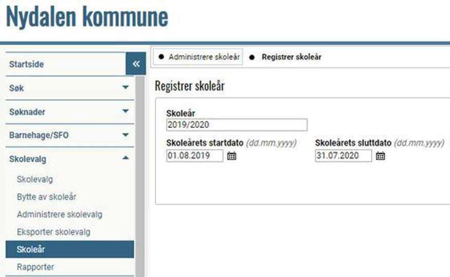 - Skoleårets startdato (vanligvis 01.08.20XX).Obligatorisk.