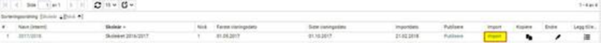 Gå til Skolevalg > Administrere skolevalg. Klikk på Import på det aktuelle skolevalget: