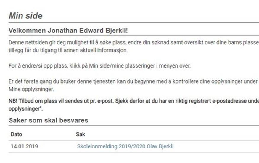 Vedtak om skoleplass