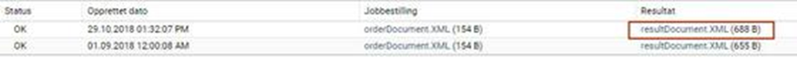 Klikk på raden for kjøringen, og klikk på lenken "resultDocument.XML" for å kontrollere resultatet av kjøringen: