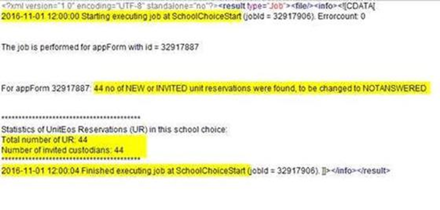 Invitasjonen sendes ut først, og publiseringen skjer etterpå.(Her kan tidspunkt for jobbene settes slik at invitasjon sendes ut kvelden før, og publisering av skolevalget rett etter midnatt.)