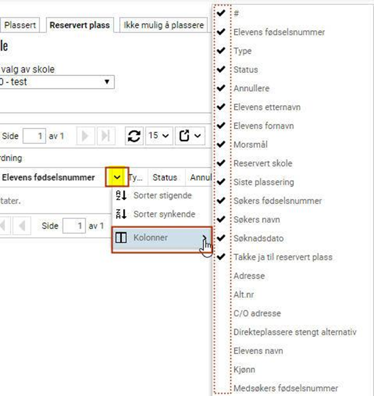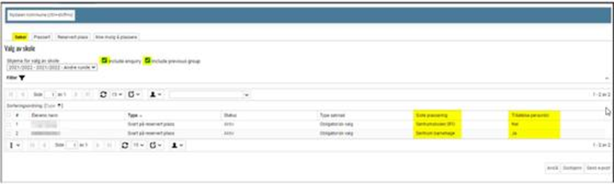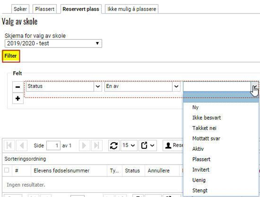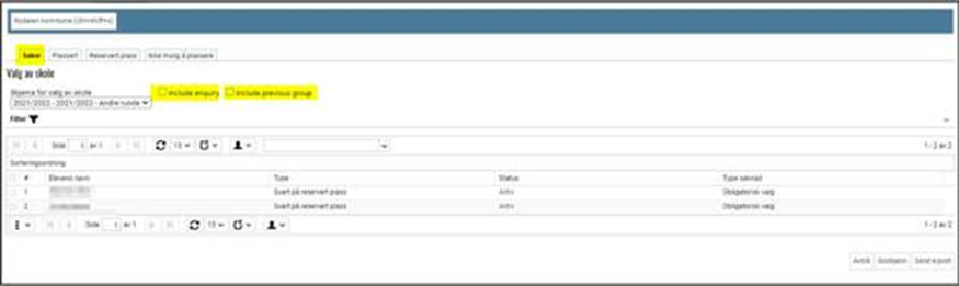 - Alle elever som har søkt enheten og har enheten som førsteprioritet. Det kan enten være førstevalget til eleven eller et valg med lavere prioritet dersom eleven har fått avslag på høyere prioritet. Her vises også elever som ikke har akseptert den reserverte plassen.