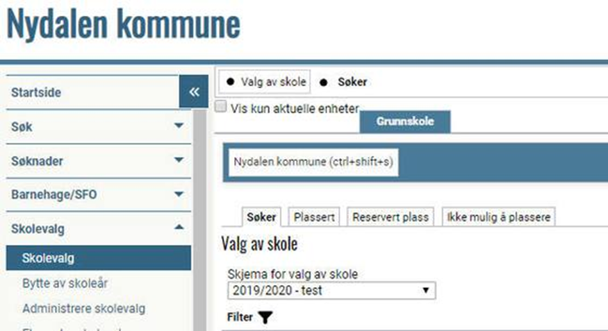 Elevene som ligger på fanen "Søker" og som ikke skal ha skoleplassen i kommunen i det hele tatt, skal det ikke gjøres noe med. Når det ikke foretas en plassering, vil de ikke inkluderes i jobben som kjøres i forbindelse med utsending om vedtak av endelig skoleplass.