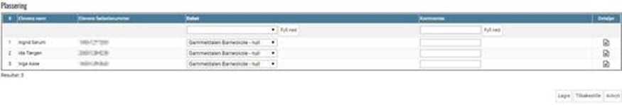 - Marker en eller flere elever som skal plasseres ved å hake av i ruten lengst til venstre. Klikk "Godkjenn".