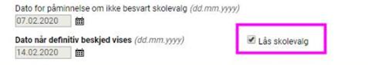 Ta bort haken i "Lås skolevalg". (Husk å sette på haken igjen etterpå.)