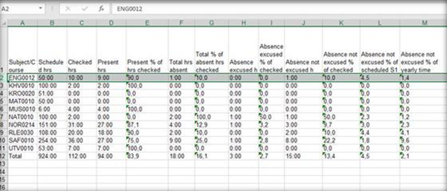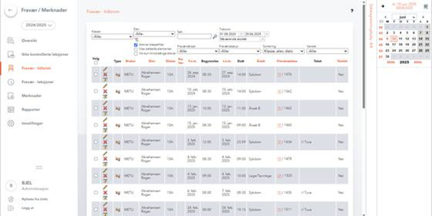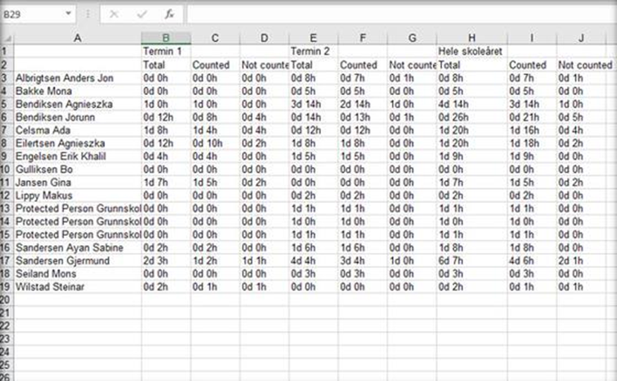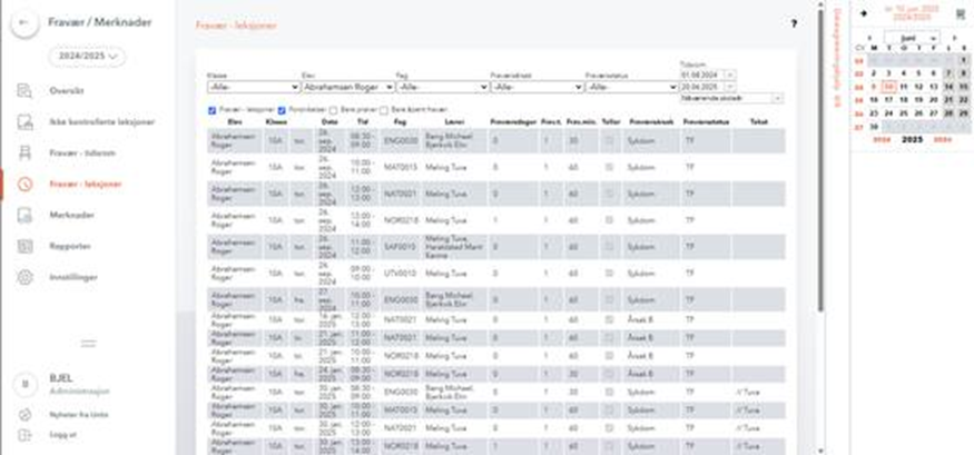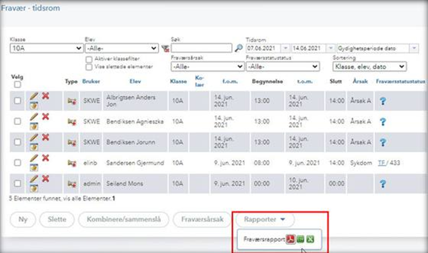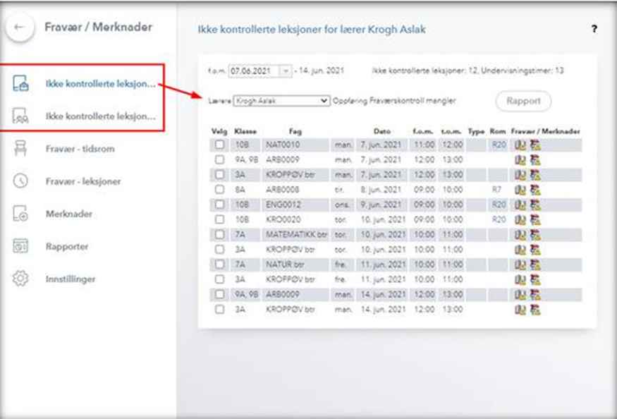 Merk! Per nå tar denne rapporten hensyn til om leksjonene er bekreftet/kontrollerte, men rapporten vil bli endret slik at den vil vise alt registrert fravær. Klikk på denne lenken for å lese mer om Bekreftede / ubekreftede leksjoner