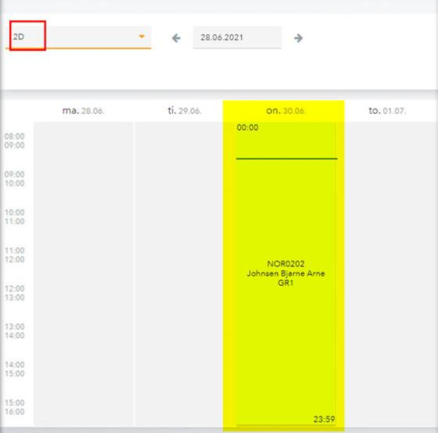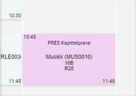 I IST Timeplanen vises prøvene med tekst og farge (avhengig av hvilke innstillinger som er satt):