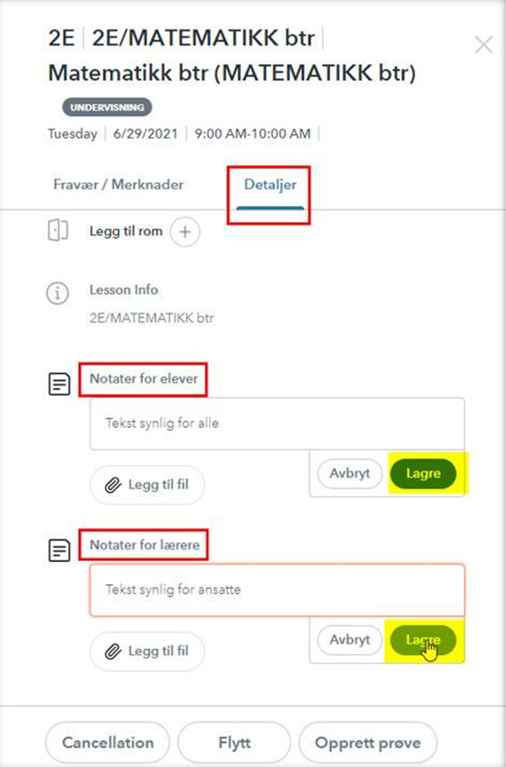 Det er mulig å registrere informasjon tilknyttet en leksjon i IST Timeplan.
