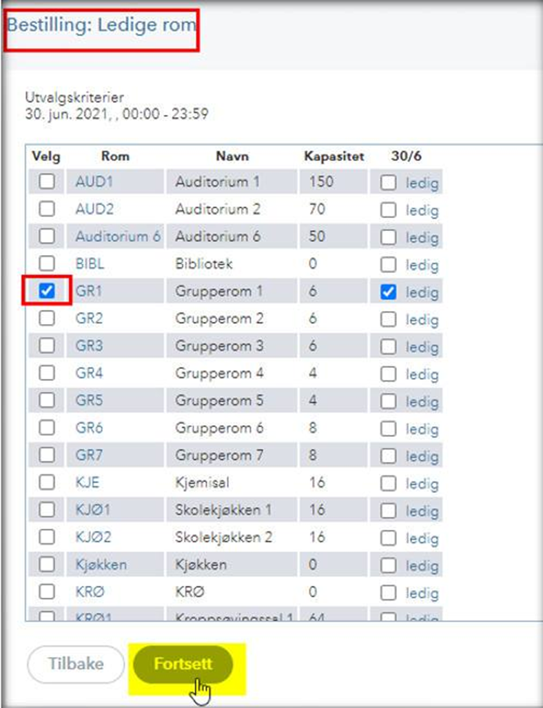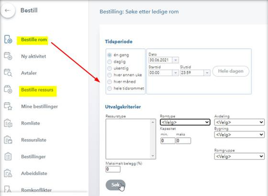 Hvis skolen har modulen Ressurs- og rombestilling kan brukere med tildelte rettigheter booke ledige rom eller ressurser.