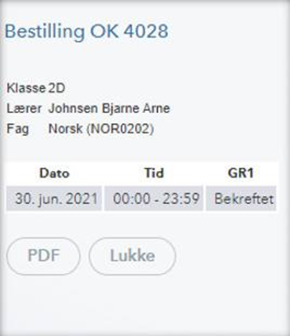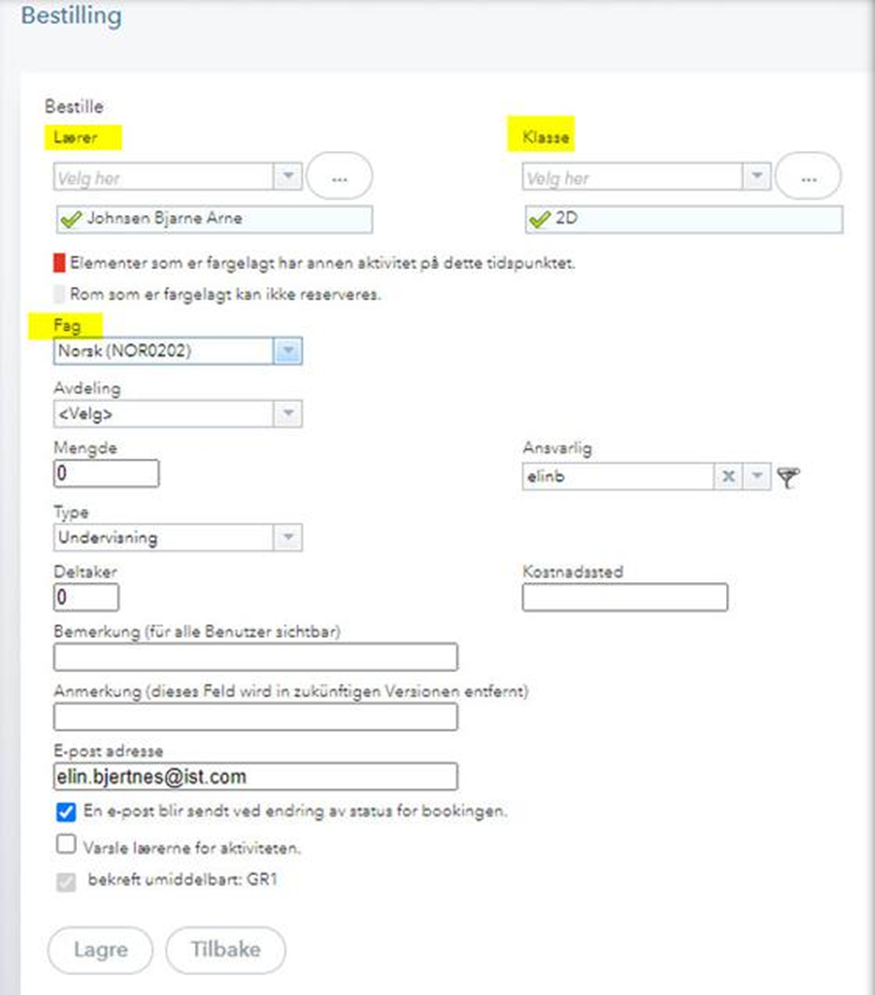 Du kan knytte en bestilling mot eksempelvis en klasse, lærer eller fag, slik at de involvertes timeplaner oppdateres: