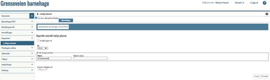 Registrere kapasitet (Ledige plasser)
