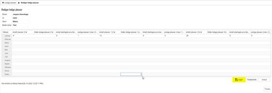 Endre kapasitet (oppdatere ledige plasser for året som er lagt inn)