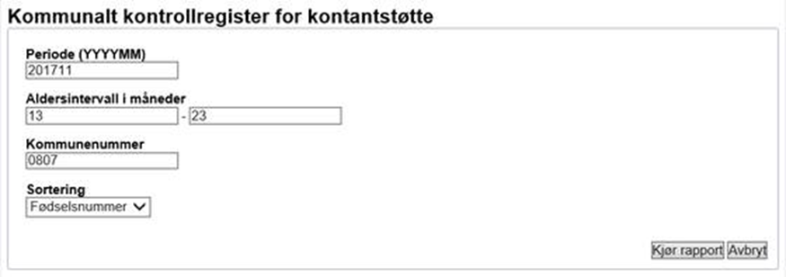 For kommuner som ikke har tatt i bruk integrasjon til NAV, er dette metoden å benytte for å ta ut kontantstøtterapportering.