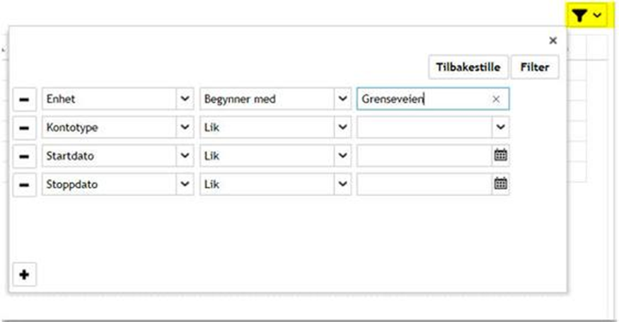 Det kan også benyttes filter for å søke frem en enkelt enhet: