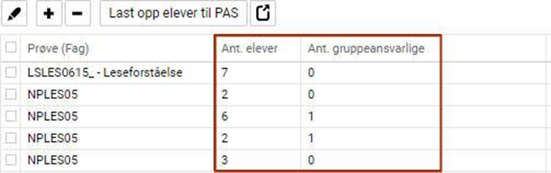 Lokaladministrator, som også er registrert med en administratorbruker hos PAS, har mulighet til å administrere grupper i forskjellige prøver gitt av Utdanningsdirektoratet, samt laste opp elevene til PAS.