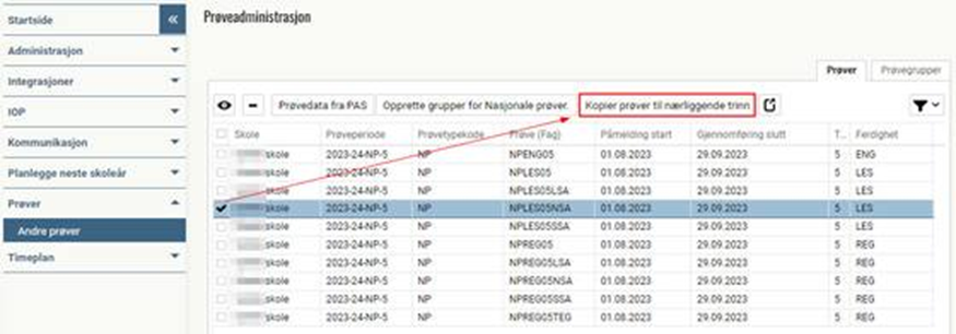 PAS leverer hver prøve tilknyttet det årstrinn prøven er tiltenkt, men opplyser samtidig om at det skal være mulig å benytte prøvene på nærliggende trinn. Vi benytter funksjonalteten Kopier prøver til nærliggende trinn til dette. Funksjonaliteten kan benyttes for prøvetypene: