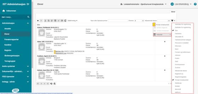 Elevregister - oversiktsbildet