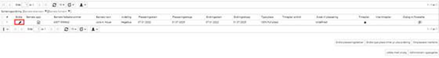 Gå til Barnehage/SFO > Plasserte barn. Finn plasseringen det gjelder, og klikk på endreblyanten i kolonnen Endre: