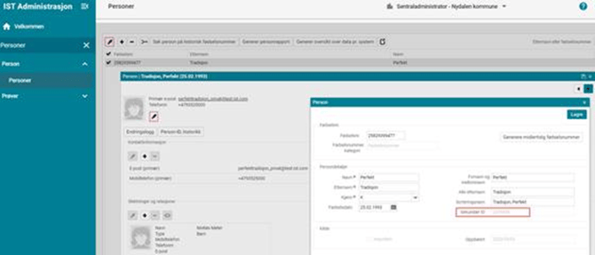 Alle personer i personregisteret får automatisk opprettet en unik verdi som vises i feltet Sekundær ID på personkortet (se bilde nedenfor)
