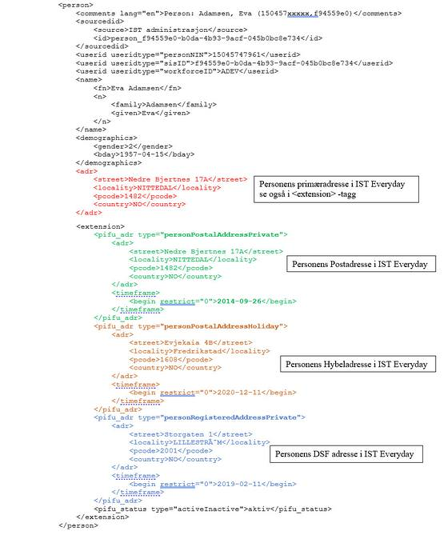 Feltnavn IST Everyday PIFU-felt Postadresse personPostalAddressPrivate Folkeregisteradresse personRegisteredAddressPrivate Hybeladresse personPostalAddressHoliday