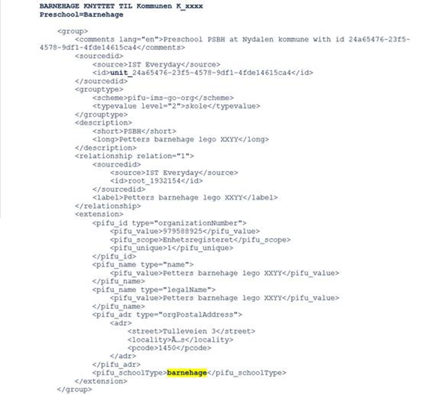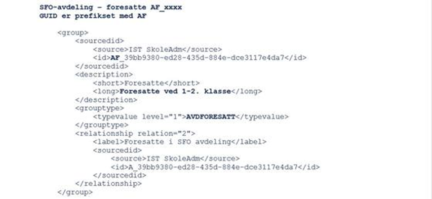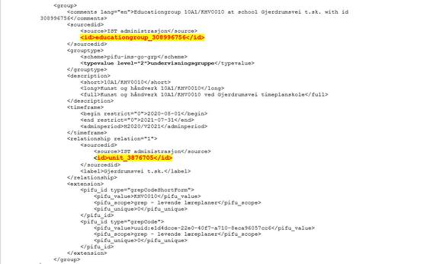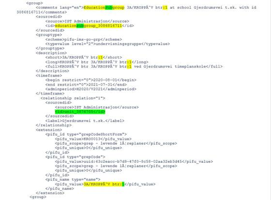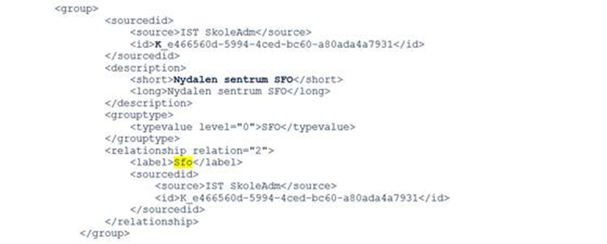 Alle grupper har en typevalue f.eks: <typevalue level="2">undervisningsgruppe</typevalue>