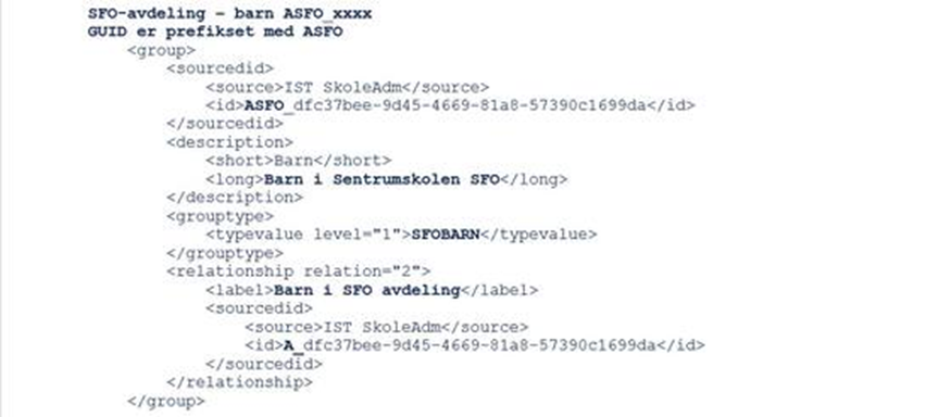 Denne dokumentasjonen er ment for utviklere og personer med kunnskap om xml-strukturerte filer. Denne benyttes som et grunnlag for å kunne importer data inn i andre tilknyttede systemer i organisasjonen. F.eks. BAS-systemer, LMS systemer, Biblioteksystem m-fl. Denne versjonen laster data for Skole, SFO og Barnehage). For SFO og Barnehage er det kun ansatte som lastes ut.