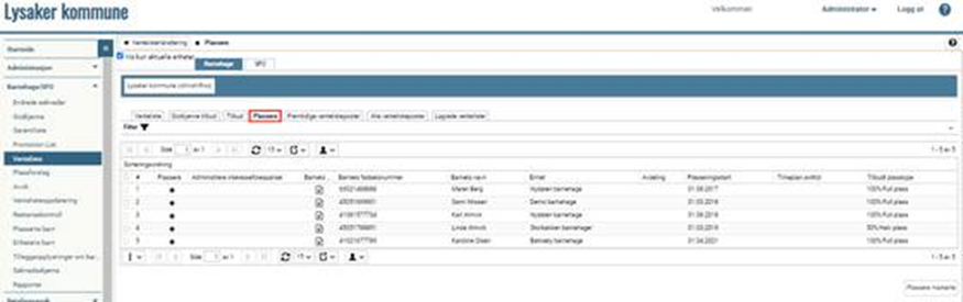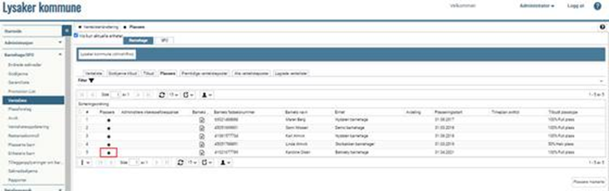 Gå til Barnehage/SFO > Venteliste > fanen Plassere: