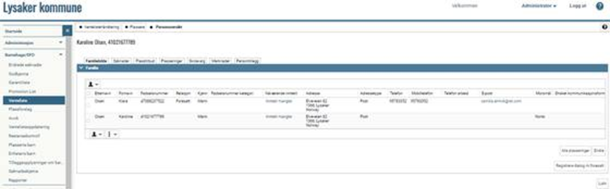 Klikk på navnet til barnet. Sjekk hvem av de foresatte (og eventuelt samboere) som barnet bor sammen med: