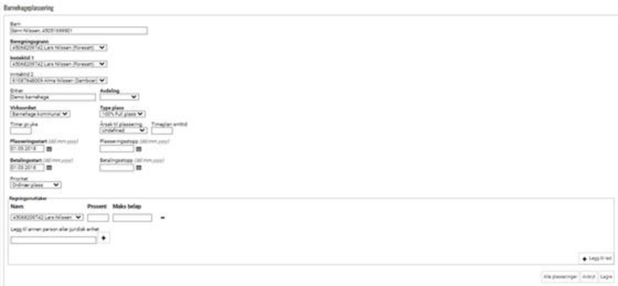 - Regningsmottaker er hvem som skal motta faktura for plass. Se egen tekst ovenfor for ytterligere presiseringer.